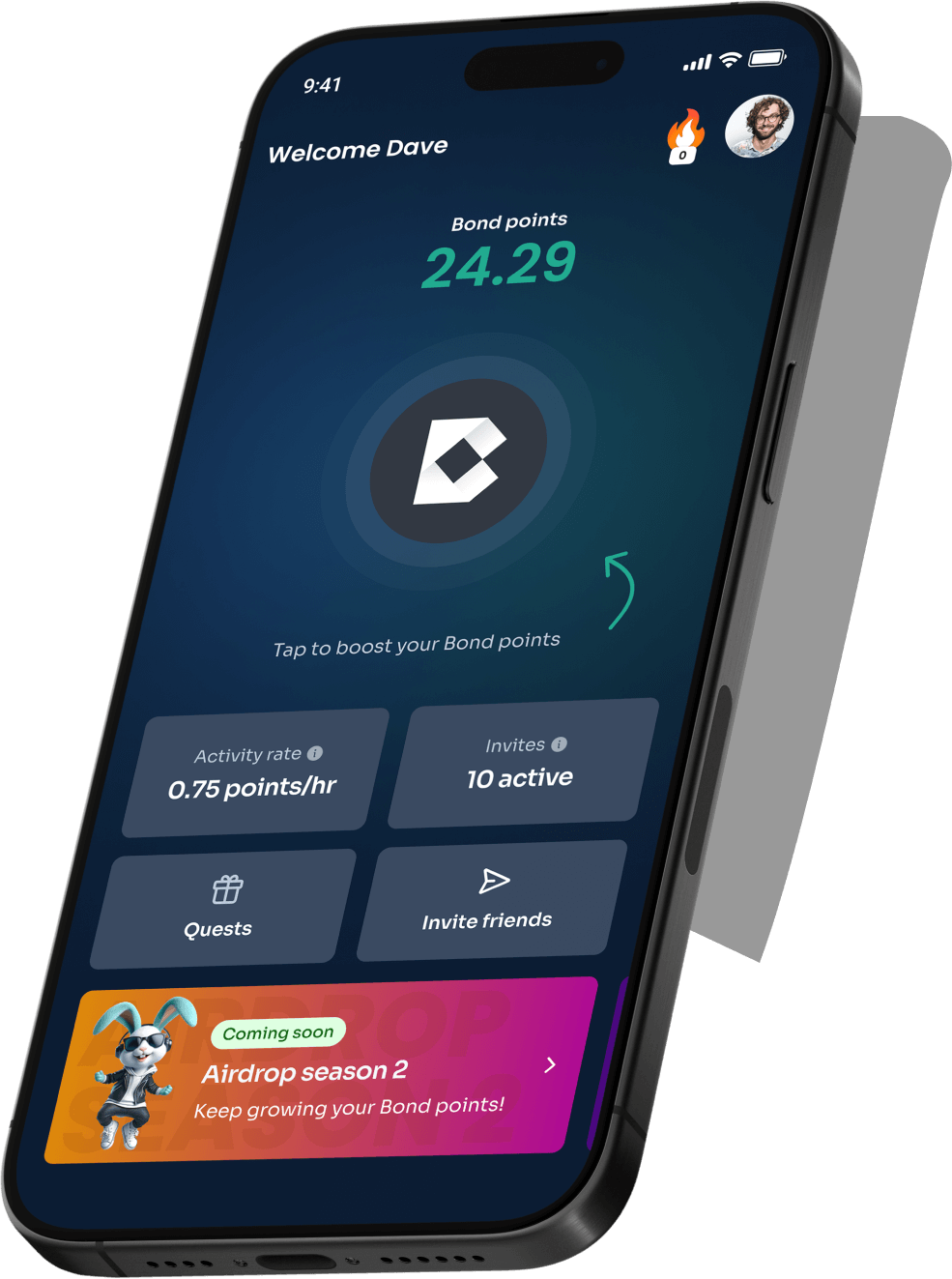 Unlock Rewards Your Bond Points act as a currency within the Bondex ecosystem, giving you exclusive access to special opportunities, tools, and airdrops. Earn Bond Points